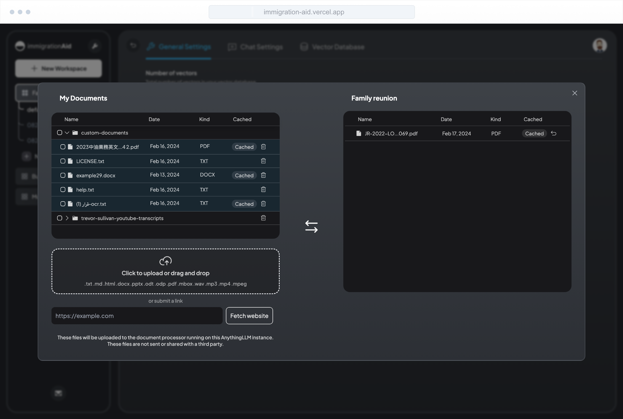 - Included vector database